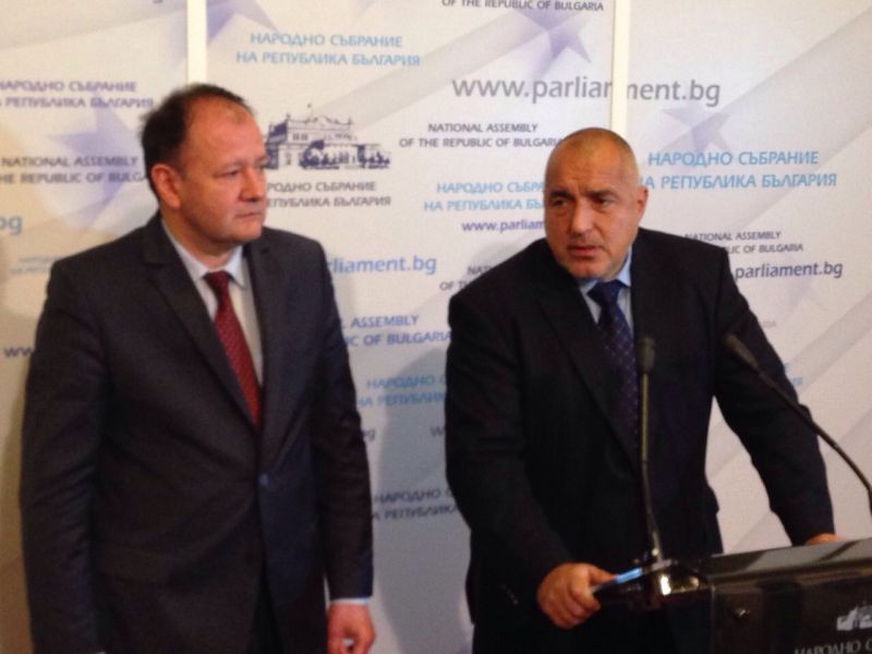 За съжаление, така са подредени партиите в парламента, че дори възможността за хипотетична коалиция не е възможна. Това заяви пред журналисти в Народното събрание председателят на ГЕРБ Бойко Борисов след срещата си с председателя на БСП Михаил Миков. По думите на Борисов има смисъл да се направи правителство, само ако е стабилно. „Заявеното от Михаил Миков, че дори да получат мандат, ще го върнат веднага, изчерпва възможностите за коалиция. Не разглеждам мандата само като отговорност на ГЕРБ. Това, което говорихме с Реформаторите и случващото се там ме кара да бъда скептик относно създаването на стабилно правителство. В така създалата се ситуацията, съм още по-тревожен за създаването на правителство“, подчерта Бойко Борисов. Според него споделената отговорност означава лидерите да бъдат вътре в правителството и там да се решават нещата и да се изпълняват програмите. „В противен случай е по-добре всички да останем в парламента, да излъчим някакво тип „Орешарски” правителство. Заковаваме например 1 юли, за да имаме време 2 в 1 да направим изборите – парламентарни и кметски, за да не харчим пари и дотогава имаме нулево време и не се занимаваме с политическо говорене”, посочи Бойко Борисов.