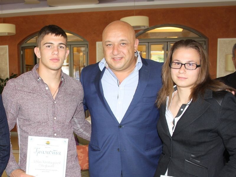Красен Кралев връчи награди на състезателите по борба Боряна Борисова и Иван Стефанов за високи постижения в спорта през 2015 г.