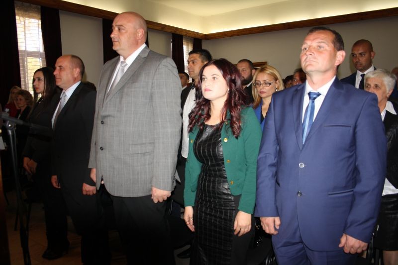 На церемонията по конституирането на общинския съвет в Котел присъстваха министърът на земеделието и храните Десислава Танева, областният управител Димитър Сяров и зам. - областният управител Камен Костов.