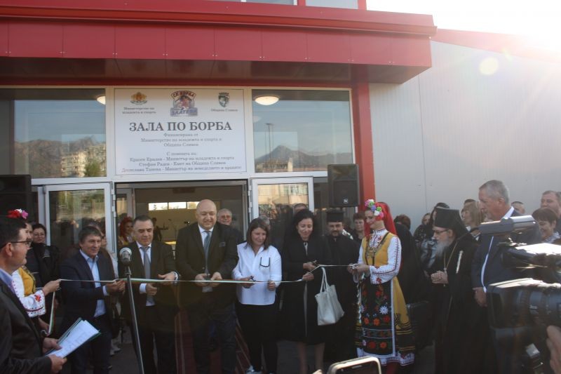Новопостроената спортна зала по борба на многократната световна и европейска шампионка Станка Златева бе официално открита в празничния за Сливен – 26 октомври - Димитровден. Лентата прерязаха министърът на младежта и спорта Красен Кралев, народният представител от ГЕРБ и председател на Комисията по земеделие в Народното събрание Десислава Танева, кметът на Сливен Стефан Радев и домакинът Станка Златева.