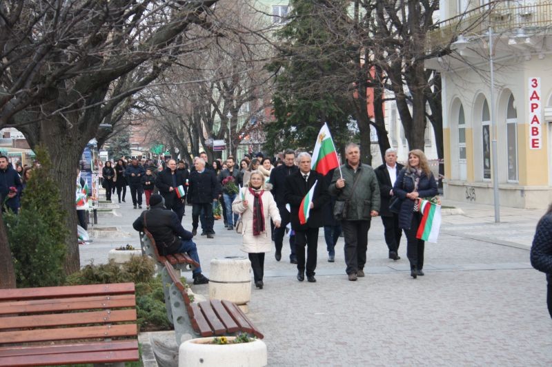 С шествие, празнична церемония и заря, тази вечер Сливен отбеляза Националния празник на България – 3 март. Шествието, в което се включиха народният представител Десислава Танева, общинското ръководство на партията, общински съветници и граждани, премина по главната улица на града. То бе предвождано от празничен парад на Военен духов оркестър – Сливен и приятели.