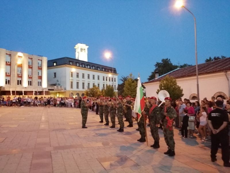 Празничната вечер в Сливен започна с концерт на Младежки танцов ансамбъл „Браво“ при Народно читалище „Хаджи Димитър – 1937“ и завърши с впечатляващи илюминации.