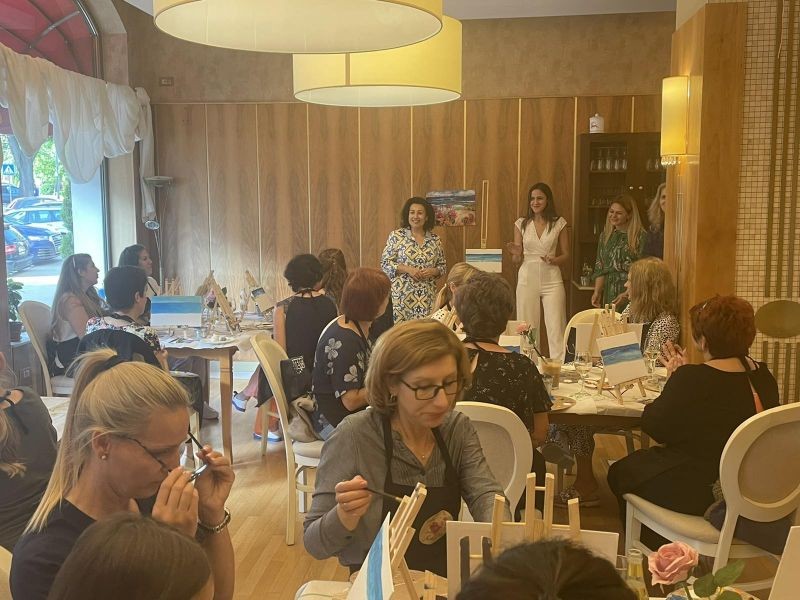 Пред статива и бялото платно, с чаша вино в ръка и приятна музика дамите рисуваха цветна морска градина.