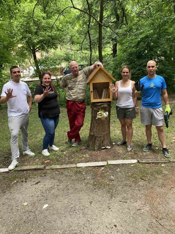 В парка младежите поставиха къщичка за книги, къщички за птички и декоративни пана с цветя.