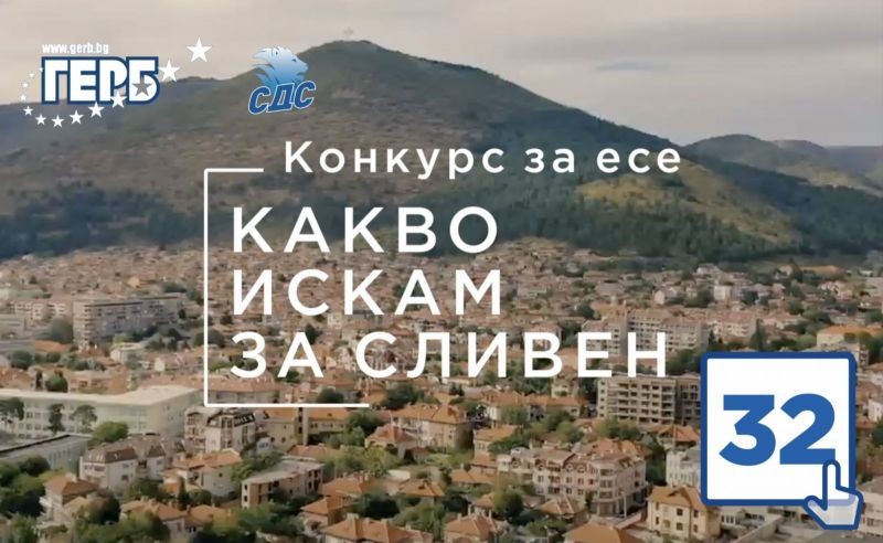 ГЕРБ Сливен организира конкурс за есе на тема “Какво искам за Сливен?”. В него младите сливналии могат да разкрият своята мотивация да живеят в града, дал на България Добри Чинтулов, д-р Иван Селимински, Васил Гендов, Добри Желязков и Панайот Хитов. В есето младежите трябва да опишат защо се гордеят със Сливен, да представят своята визия за това, как искат да изглежда родният им град и общината, и какво искат да се промени, за да видят перспектива тук.
