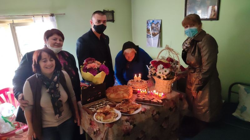 96-годишната баба Петка Денчева от сливенското село Самуилово получи специални поздрави от ГЕРБ по случай рождения си ден. Цветя, торта и благопожелания за здраве й занесоха Галина Вучкова - член на Националния изпълнителен съвет на Жени ГЕРБ и кандидатът за народен представител от ГЕРБ и СДС Мария Белова, чийто корени също са от село Самуилово.
