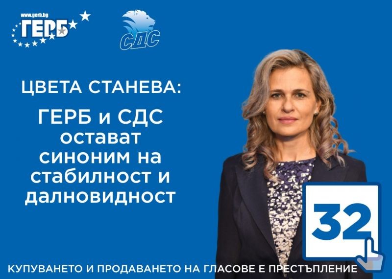 Цвета Станева: Всичко, за което стана дума дотук води до извода, че България има нужда от стабилност, предвидимост, компетентност и визия за развитие. Единствено ГЕРБ и СДС могат да осигурят всичко това за страната ни.