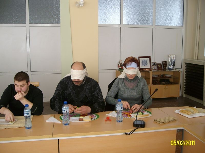 Обяснени бяха някои основни изисквания, които трябва да знаят и зрително затруднените и техните близки, за да бъде улеснен живота им и да се справят в ежедневието си. Беше проведено практическо занятие за приготвяне на сандвичи, което е най-лесното упражнение за самостоятелна работа. Близките на зрително затруднените се поставиха на тяхно място, като се опитаха да направят сандвичи със закрити очи. В този етап на проекта се коментираха и теми, свързани с други практически умения - самостоятелно обличане, работа с електроуреди и други техники от ежедневието.