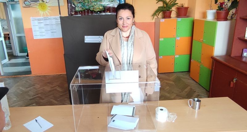 Десислава Танева упражни правото си на вот в училище „Хаджи Мина Пашов“ с хартиена бюлетина.