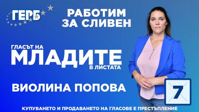 В настоящата кампания ГЕРБ предлага над 50% обновена листа с кандидати за общински съветници. Към утвърдените професионалисти има и редица млади имена като хореографа Виолина Попова (преференция 127). Тя смята, че ще бъде полезна в развитието на културата и изкуствата в общината. По думите й на 29 октомври трябва да изберем ГЕРБ с номер 7, защото единствено те развиват града към по-добро и могат да надградят постигнатото.