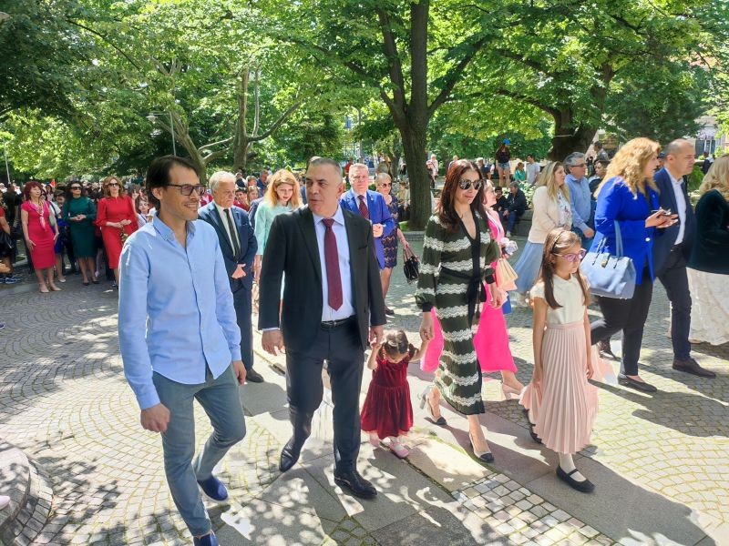 По време на тържествената церемония, посветена на празника, кметът Стефан Радев благодари на учителите, които са се посветили на това да дават път, посока и знания на младите хора, а на учениците пожела да вземат най-доброто от своите учители и да постигат успехи. „Днес повече от 300 млн. души по света пишат с кирилица. С право Иван Вазов възкликва: И ний сме дали нещо на света и на вси славяни да четат“. Едва ли има българин, където и да е по света, който да не трепва, когато чуе звуците на „Върви, народе възродени!“. Тази идентичност е закодирана в нас и ни дава сили. Помнете, че ние сме от народите, който е дал най-много на цивилизацията, на културата“, заяви Стефан Радев.