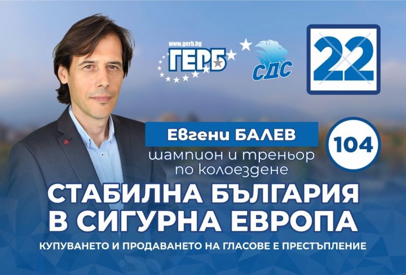 Може да подкрепите Евгений Балев като гласувате с № 22 в бюлетината, с преференция 104.