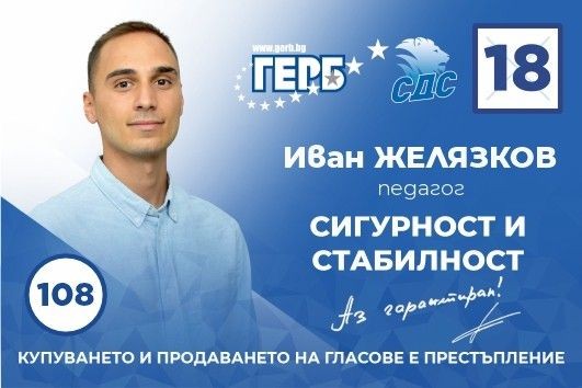 Може да подкрепите Иван Желязков като гласувате с № 18 в бюлетината, с преференция 108.