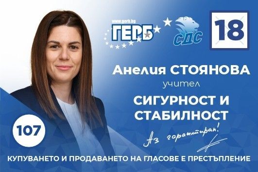 Може да подкрепите Анелия Стоянова като гласувате с № 18 в бюлетината, с преференция 107.