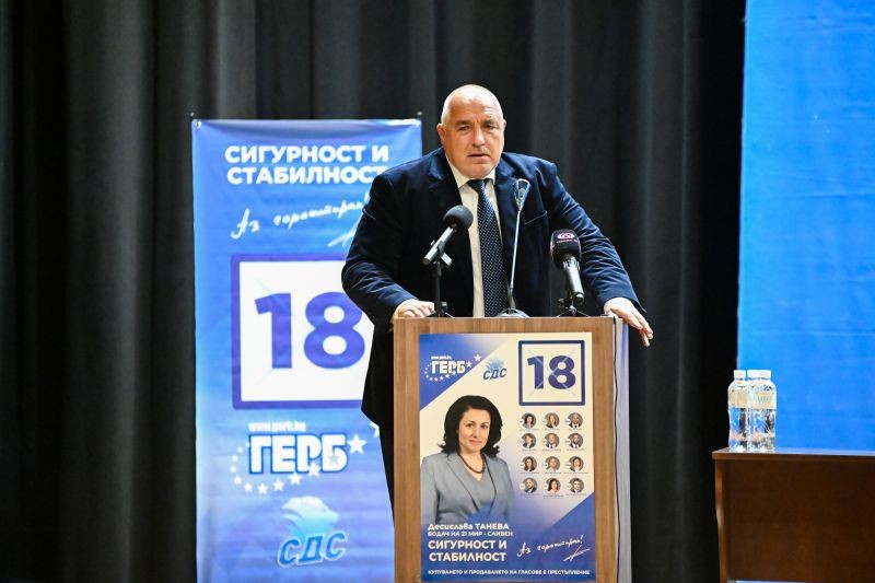 Лидерът на ГЕРБ Бойко Борисов заяви, че само ГЕРБ-СДС са доказали, че могат да се справят. Доказано е чрез санирането, строителството, магистралите. „Хората знаят какво може ГЕРБ. Без мнозинство, дупката в бюджета ще е още по-голяма от сегашните 18 милиарда. Трябва мнозинство, за да удържи котвата и да не позволи на държавата да се разбие. Неяснотата кой ще е премиер смъква избирателната активност. Хората искат да знаят ако тази партия печели, премиер ще е... Ако са разочаровани от него, ще гласуват за другите“, каза Бойко Борисов и допълни, че всички искат да знаят кой е този равноотдалечен премиер, който от ППДБ го знаят, но не му знаят името.