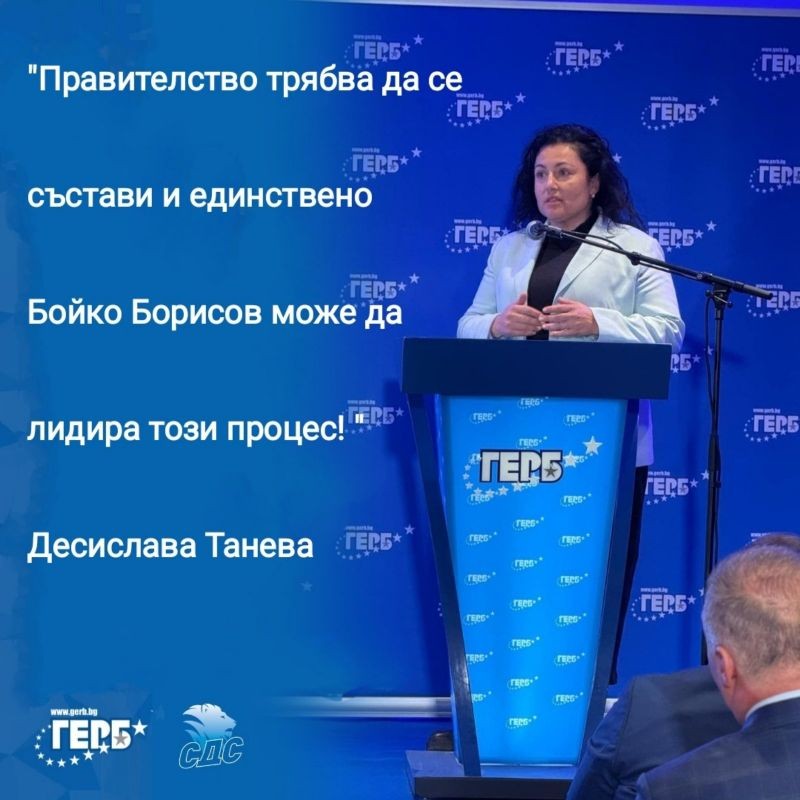 Тя заяви, че днес трябва да има мъдрост и да се намерят обединяващи зелени линии, които да дадат надежда на нашия народ, че може да има достойни управляващи. „Ние от ГЕРБ сме се доказали в това и трябва да убедим мнозинството от избраните в НС, защото това искат хората. Може ли в тази политическа криза, вече четвърта година, ние да имаме президент, който вместо да каже, че трябва да направим кръгла маса като в 90-те години, за да се постигне консенсус за народа, той излиза и казва, че изборите са нелегитимни. Трябва да има държавническа отговорност. Затова казвам респект и поклон за всеки гласувал за нас, защото пората пак ни разбраха и това е благодарение на здравите структури, които ГЕРБ създаде, поддържа, работи до ден днешен, независимо дали сме чегъртани или сме в управлението“, заяви още Десислава Танева.