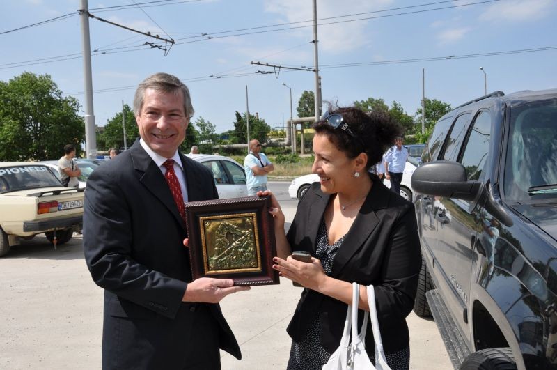 Посланикът на САЩ у нас Джеймс Уорлик посети Сливен по покана на народния представител от ПП ГЕРБ и председател на Парламентарната комисия по земеделие и гори Десислава Танева. Тя посрещна американския посланик и му подари бронзов плакет, изобразяващ един от символите на Сливен - природния феномен Халката. Визитата на високия гост започна от бирария „Болярка”, където посланикът дегустира пивото, предлагано в заведението и поздрави персонала. След това Негово превъзходителство посети ромската общност в сливенския квартал „Надежда”. Джеймс Уорлик разговаря с представители на малцинството и вдигна на ръце малко момиченце. „Това, на което се надявам аз и мисля, че всички българи се надяват, е да се осигури един по-добър живот за ромската общност в България. Има много предизвикателства пред интеграцията на ромите и тук виждаме само един пример за това. Изключително важно е да отбележим, че има редица хора, които допринасят много в тази посока. Моята надежда за това прекрасно момиченце е то да получи образование, да си намери добра работа и да бъде продуктивен гражданин на това общество”, каза посланик Уорлик. Той допълни, че основните проблеми на ромите са свързани с образованието, здравеопазването и инфраструктурата. В квартал „Надежда” американският посланик бе придружен от депутата Десислава Танева, д-р Стефан Панайотов от фондация „Здравето на ромите” и Стела Костова - общински съветник от ГЕРБ и заместник-председател на Националния съвет по етнически и демографски въпроси. Целта на посещението на американския посланик бе да се запознае в максимална степен с начина на живот на ромите и да придобие реална представа за проблемите в ежедневието им. Джеймс Уорлик посети и сливенските предприятия „Декотекс” и „Гривас”. В „Декотекс” той разгледа изложбената зала и производствената част на компанията и прояви интерес към материалите, които се използват в производството на килими, както и от капацитета на завода. При посещението си в базата на фирма „Гривас” посланик Уорлик се запозна с продуктите на предприятието и произхода на използваните суровини. В Сливен посланик Джеймс Уорлик бе придружен още от членовете на Парламентарната комисия по земеделие и гори Христина Янчева и Атанас Камбитов от ГЕРБ, Петя Раева от ДПС (бивш изпълнителен директор на Напоителни системи ЕАД София) и Пенко Атанасов от Коалиция за България.