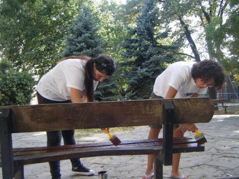Младежи от ГЕРБ-Сливен боядисаха пейките в „Попската” градинка